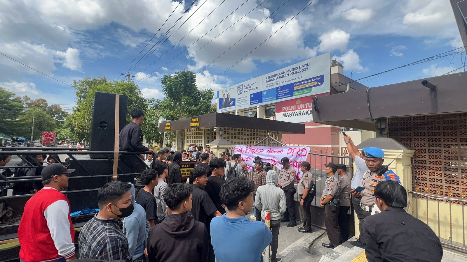 Dengan membawa spanduk dan poster tuntutan, massa berorasi di depan Polrestabes Medan. Mereka menekankan agar kepolisian tidak ragu bertindak cepat dan profesional, termasuk melakukan upaya pemanggilan secara patut sesuai ketentuan hukum yang berlaku.
